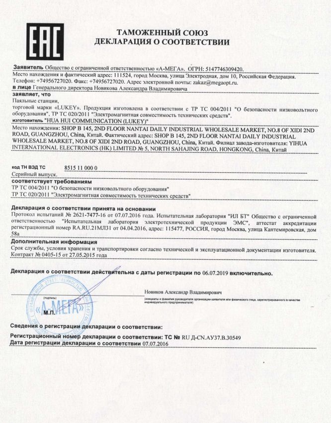 Инструкции и сертификаты